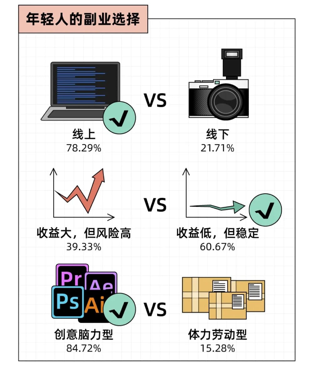 统计了年轻人做副业的现状。