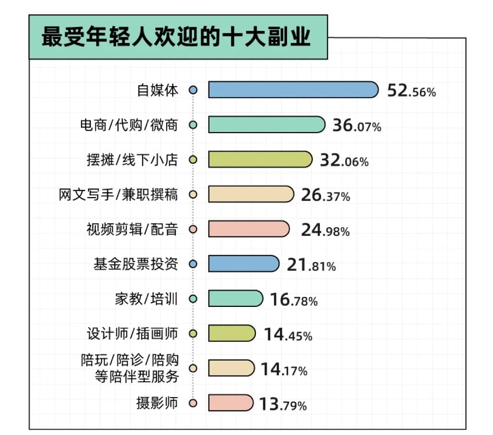 相较于难以自己做决定的主业,年轻人对副业的选择权可是大大增加了。他们都喜欢什么样的副业?