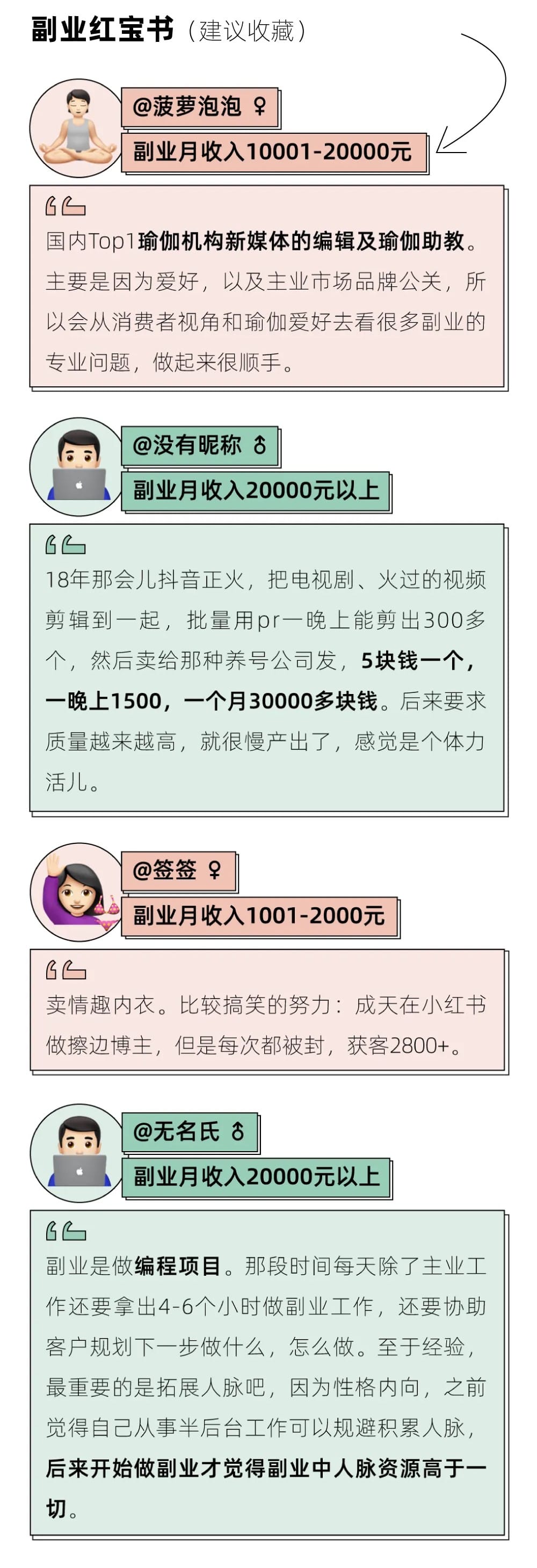 虽然副业搞钱不易,但总有人赚到了钱,而且他们还把各自的生意经告诉了我们。